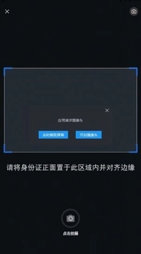 2. 在身份证识别界面,把身份证原件与获取外框的两端对齐,然后点击【点一下】。