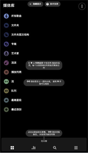 答:请务必在仔细检查所有文件夹后,设置“=>”文件夹以及“库=>音乐文件夹”中的音乐。您的原生Android图书馆并未发生改变,且没有任何文件被删除。