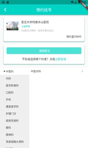 1完成之后,点击进入,在主页上能够依据医院或者科室进行挑选。