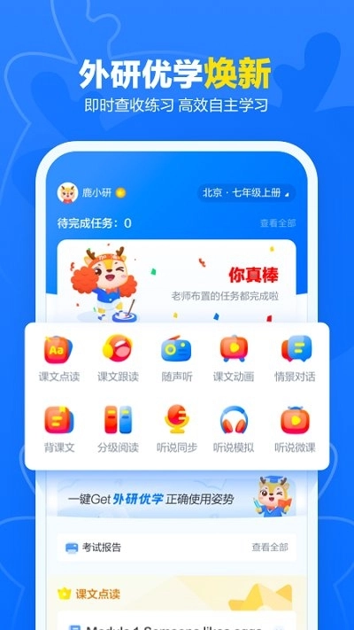 1. 外研优学学生版能够满足课前、课中、课后全场景的教学需求,它是专门针对中小学生研发的英语学习产品。
