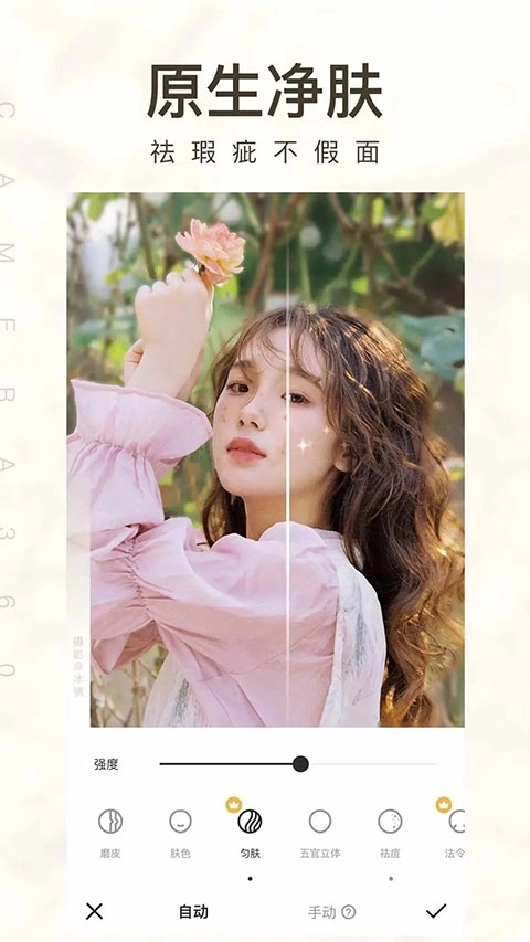 2、安装手机版相机360自拍,无需进行夸张的整容手术,就能让你拥有婴儿般柔嫩光滑的肌肤,还能更出色地保留细节与质地。