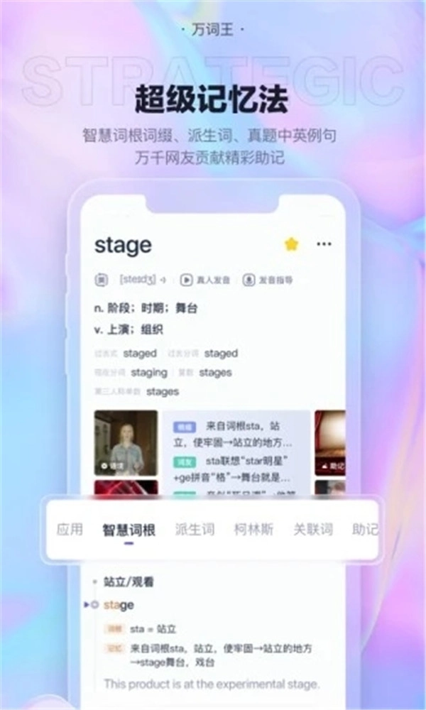 1. 提供分级背词功能,满足四六级、考研、托福等各类不同需求。