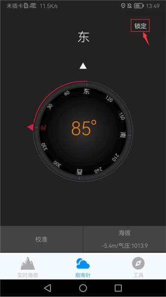 4、指南针的指向会依据用户的变动实时改变,要是你不想让它一直跳动,可点击右上角的“锁定”。