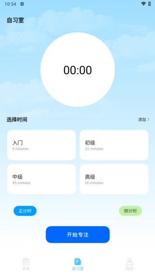 3、在底部的自习室板块,用户能够自行设定学习时长,以此助力用户把控专注时间。