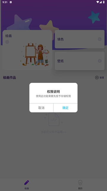 2. 开启手机内的使用权限,便可着手进行绘画作品的创作。
