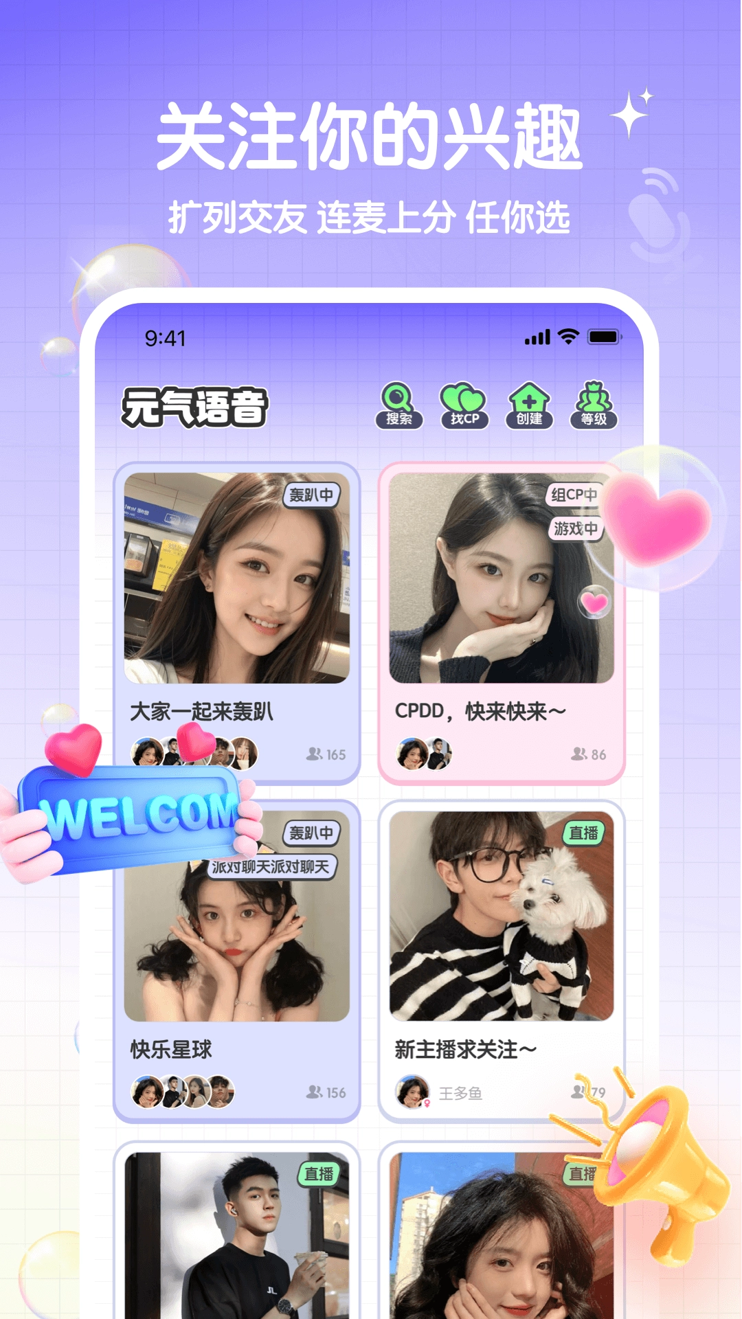 3、语音交友:拥有多样语音玩法,无论是聊天还是唱歌,欢乐都不会间断。