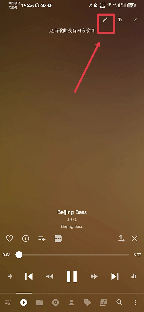 2. 如果这首歌曲显示没有内嵌歌词,可点击右上角的笔形图标。