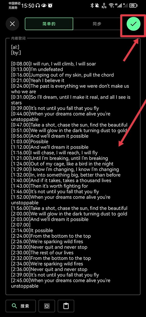 3、进入之后,你既能够选择自行编辑歌词内容,也可以点击左下角的搜索按钮,从而跳转至浏览器。