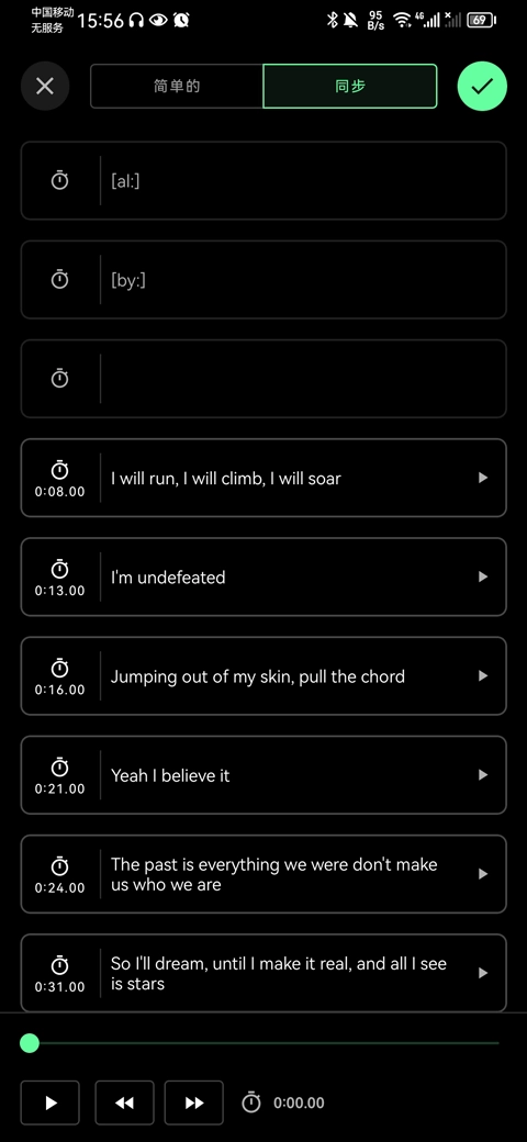 5、此外,你还能够在同步界面播放歌曲,且在歌曲播放过程中,歌词会自动同步。
