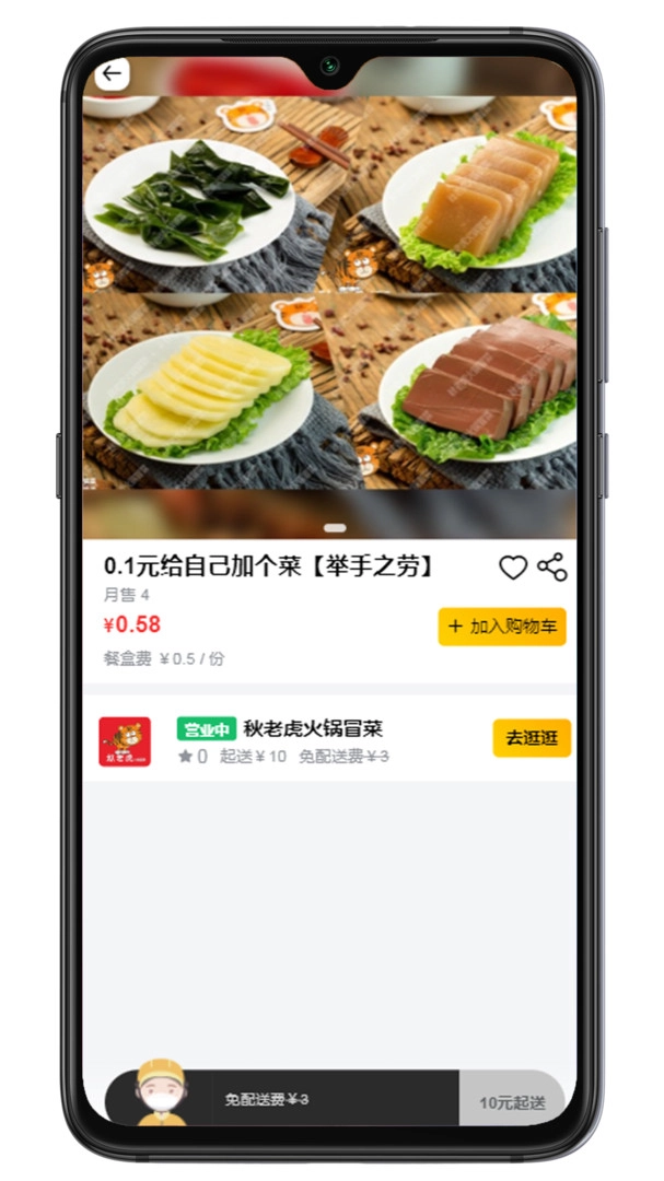 3、用户在线不仅能够购买心仪的美食,还可选购新鲜的蔬菜与肉类。此外,平台还为用户提供了收藏功能。