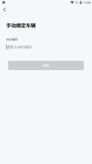 3、点击“手动绑定”,输入车辆上的IMEI编码,点击“确定”,即可完成车辆绑定。