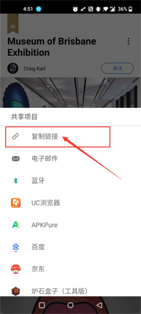 4、接着点击下拉项目里的“复制链接”。