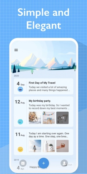 1、简约设计使得操作变得简单易用,让您能够专注于记录和回顾自己的生活。