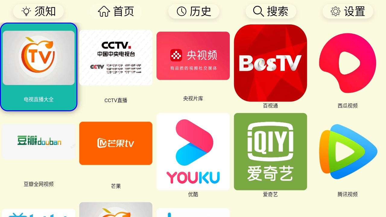 2、进入首页,首页页面汇聚了大量的电视频道。