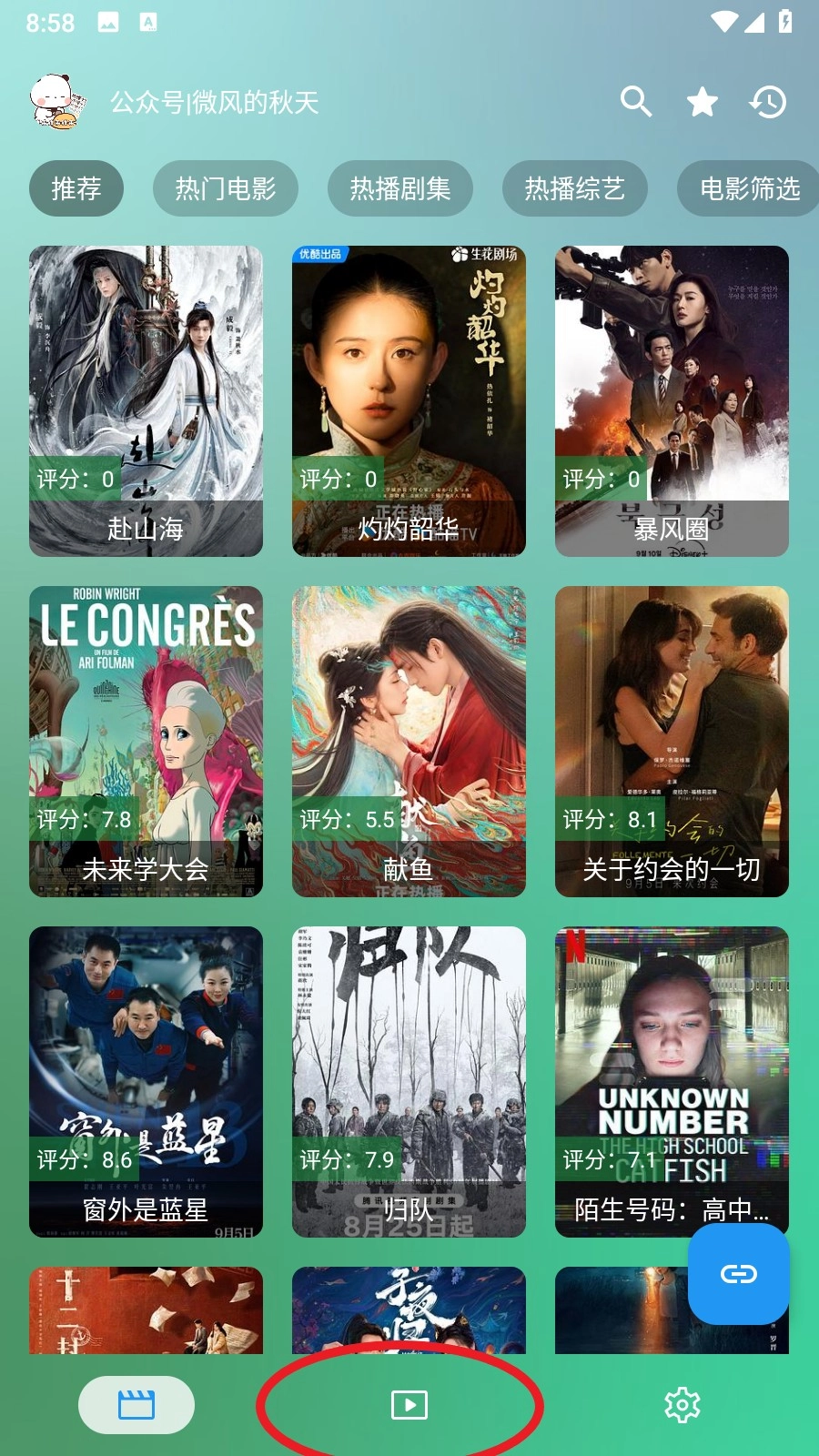 1. 开启幸福年年影视App,轻点页面底部导航栏的中间按键。
