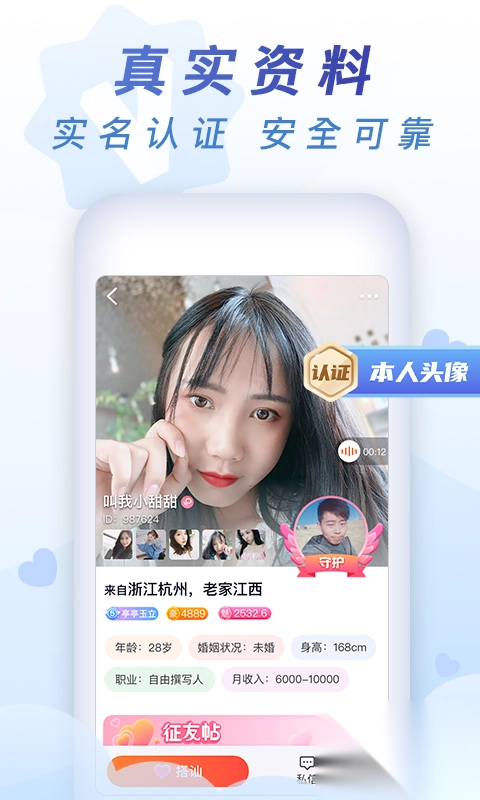 2、呈现最真实的自我,通过实名认证,无需担忧遭遇欺骗。