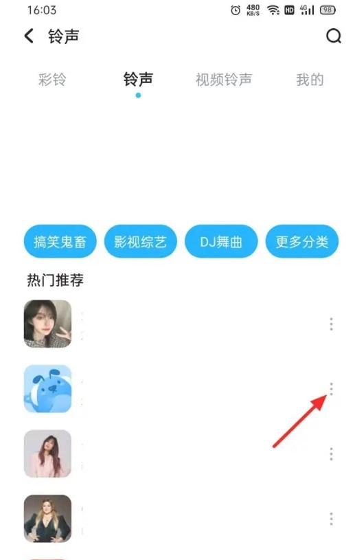 在来电铃声页面,点击“去看看”在线铃声。