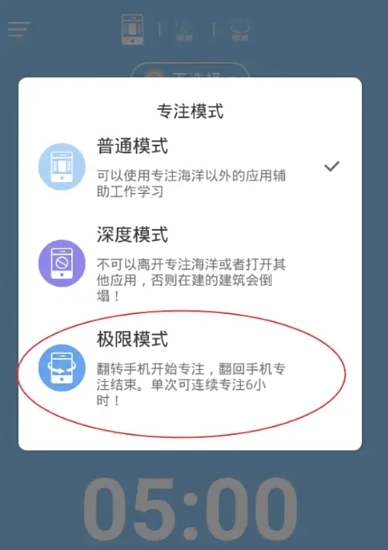 2. 能够进行时间设置,点击后开启专注模式。