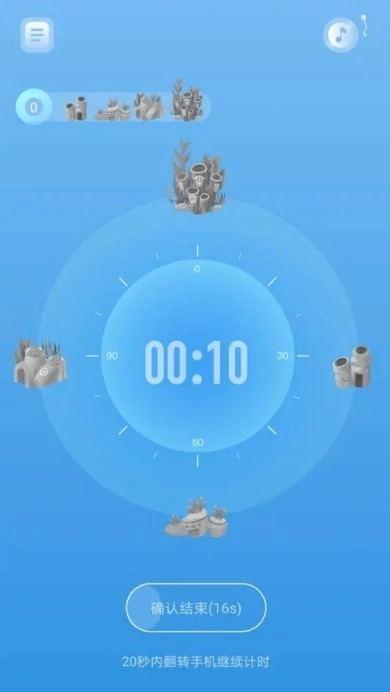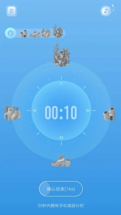 3、要是在过程中拿起手机,或者不小心碰到了,无需过于慌张。届时会有20秒的结束提醒,只要拿起手机,手机机身就会震动,以此告知你计时马上就要停止了。