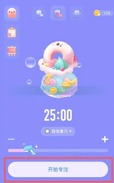 1. 轻点专注海洋左侧的“小章鱼”,即可进入专注助手。