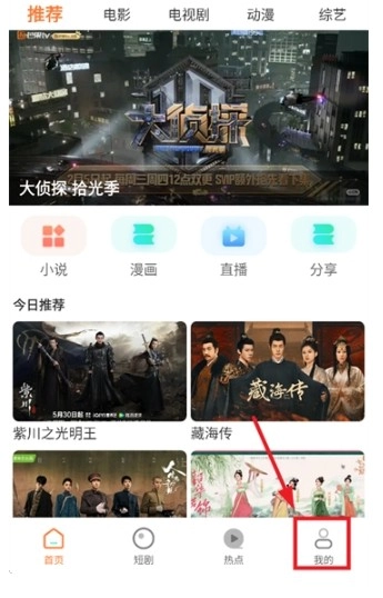 1、开启香葱追剧,进入首页界面后,轻点“我的”选项。