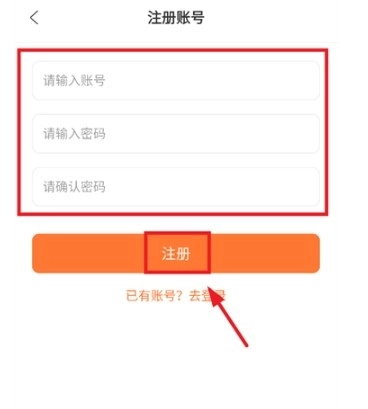 4、进入注册账号页面后,填写账号与密码,随后点击“注册”按钮即可完成操作。