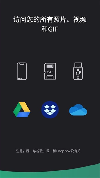 借助Piktures,您能够获取存储于多个云服务上的照片。当下,它已支持Google Drive、OneDrive以及Dropbox,且在接下来的几个月里,还会增添新的云服务。需注意的是,我们与Google、Microsoft和Dropbox并无关联。高级版本用户可同时享有多个云服务的高级权限。