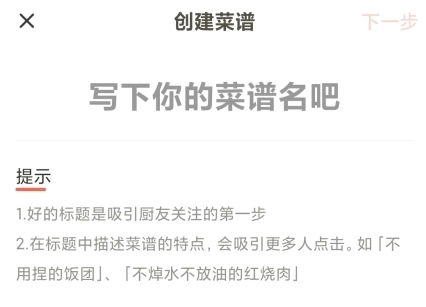 2、首先是要给菜谱取一个好听的名字,好的标题可以更好的吸引大家点击进来。