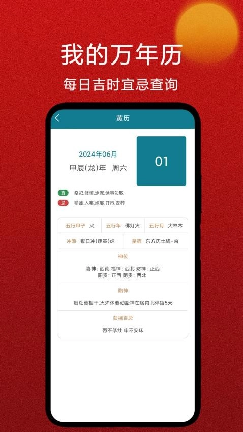 4、用户能够通过在线查询黄历信息,知晓黄历里的宜忌具体内容。