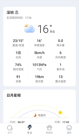 5、专业天气功能更为详尽,不仅涵盖气温信息,还提供日月星相、空气质量等气象服务内容。