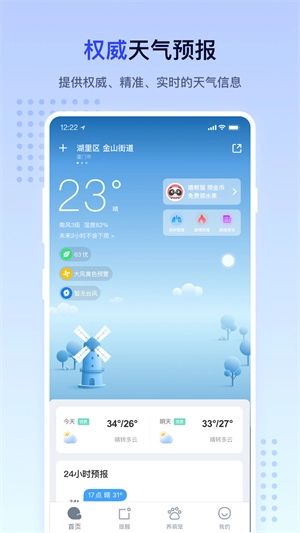 1、天气预报:提供逐24小时精准实时的天气信息预报,同时实时预报未来15天的天气情况。