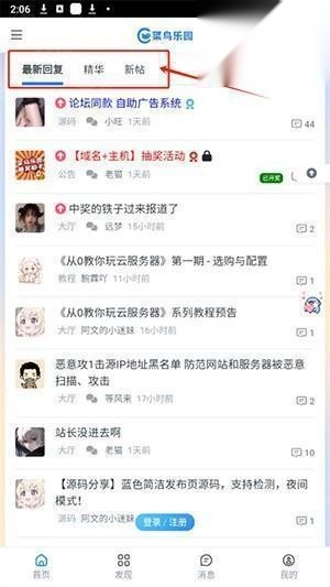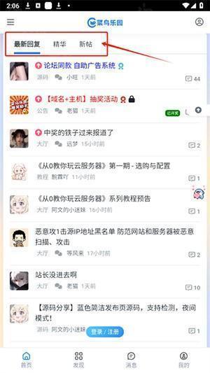 1. 在首页,能够看到大家的回复,以及各类精华帖和新帖的内容。