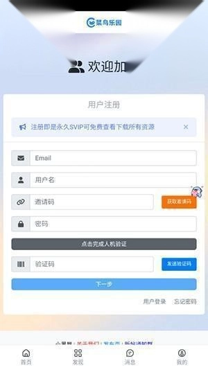 3、依次输入邮箱、用户名、密码以及验证码完成注册。