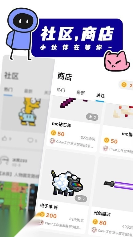 1、游戏主要包含创意板块和社区交流板块,玩家可自行选择进入。