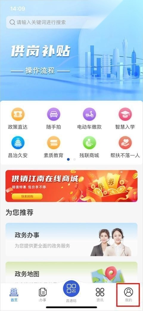 1. 当进入“i南昌”主页面时,点击“我的”。