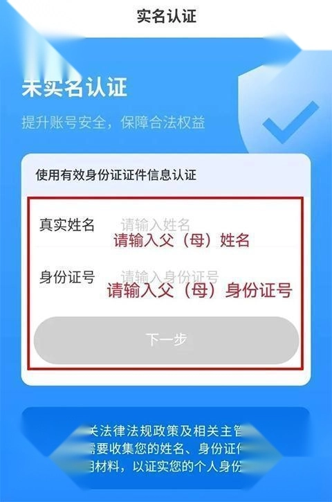5、填入真实姓名与身份证号码,接着点击下一步。