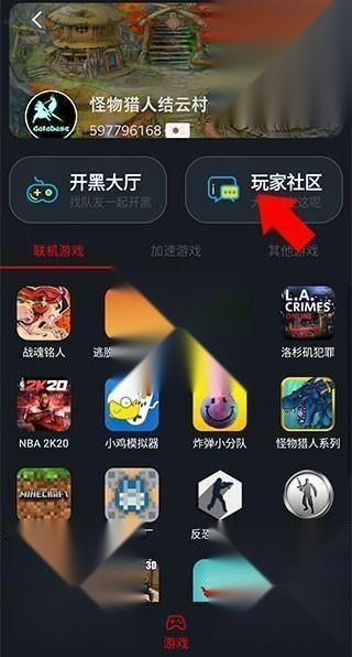 1. 接着点击像素联机,再点击【玩家社区】