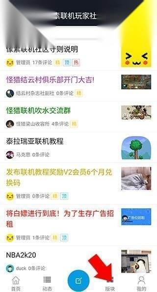 2. 当进入玩家社区界面后,轻点下方导航栏的版块界面。