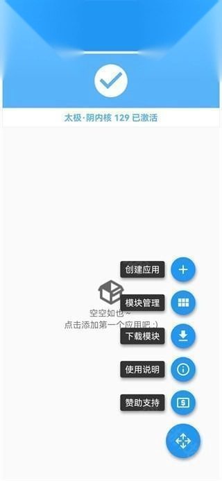 点击右下角的展开按钮,便能看到创建应用、模块管理以及模块。
