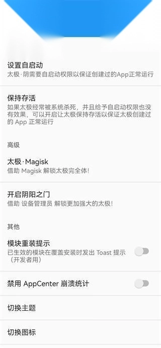 太极可能已被系统终止运行,也可能是你未赋予太极自启动的权限。你可选择将太极添加至系统内存清理的白名单中,并允许太极自动启动。