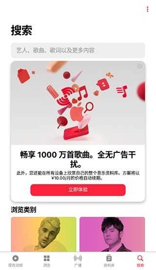 Apple Music 是一款超好用的软件,主要为安卓用户打造,能在手机端播放歌曲。不仅有热门歌曲,还能收听电台节目,让您在通勤路上尽情用耳朵感受音乐世界,丰富您的旅程时光,快来使用吧!