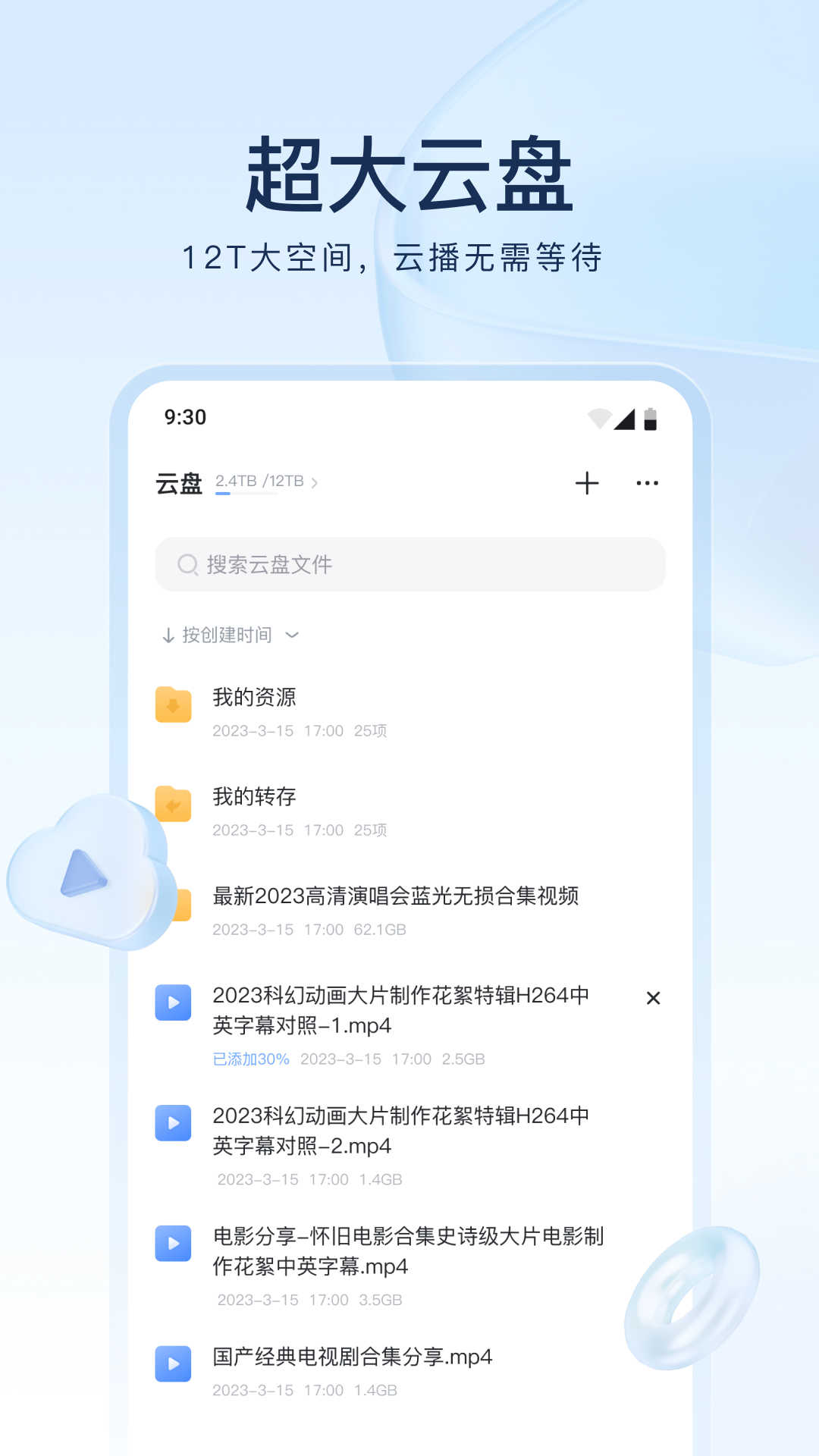 【超大云盘】拥有惊人的12T超大空间,云播极速响应,无需漫长等待。无论使用手机还是电脑,都能随时随地便捷浏览云端文件列表。