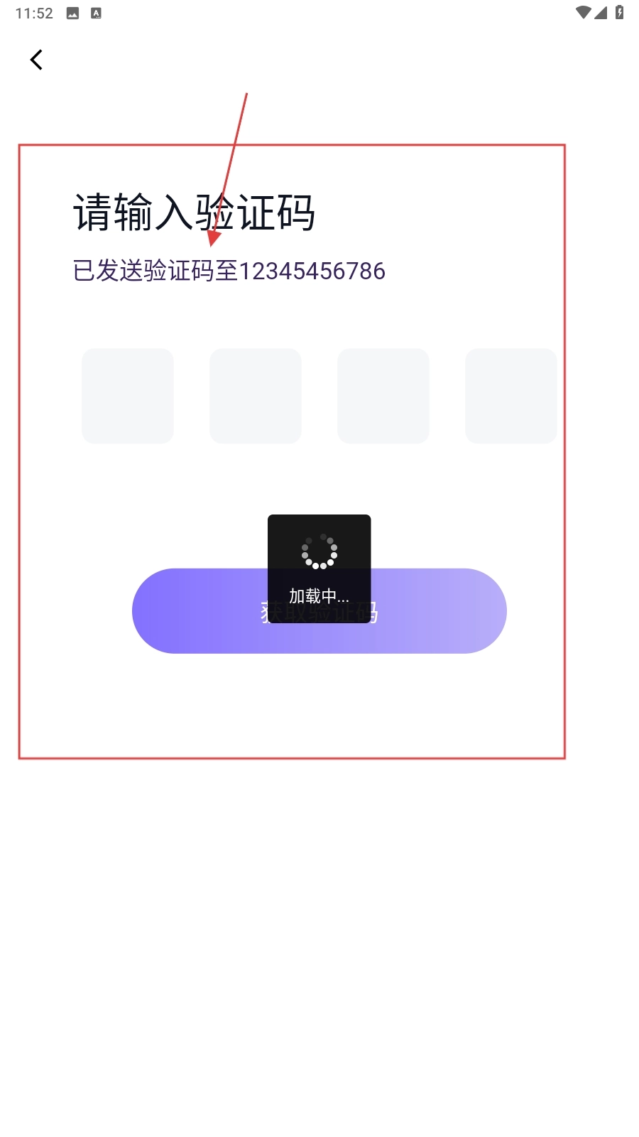 3、来到验证码填写页面,填入系统发送的验证码,待加载完毕,完成验证后即可进入。