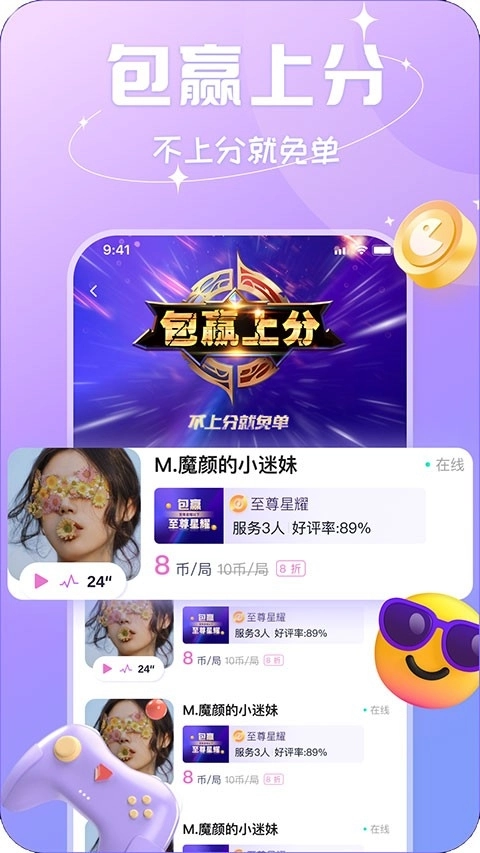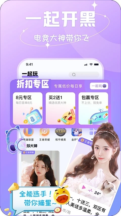 2、游戏大神带飞:特邀电竞大神,为你提供专业游戏指导,携手组队开黑,助力轻松上分,全方位提升游戏体验。