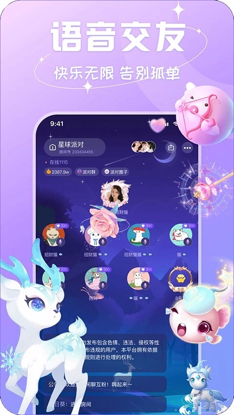 3、语聊房实时互动:借助语聊房,你能与其他用户展开语音互动,快乐将如影随形,助力孤独的年轻人驱散寂寞。