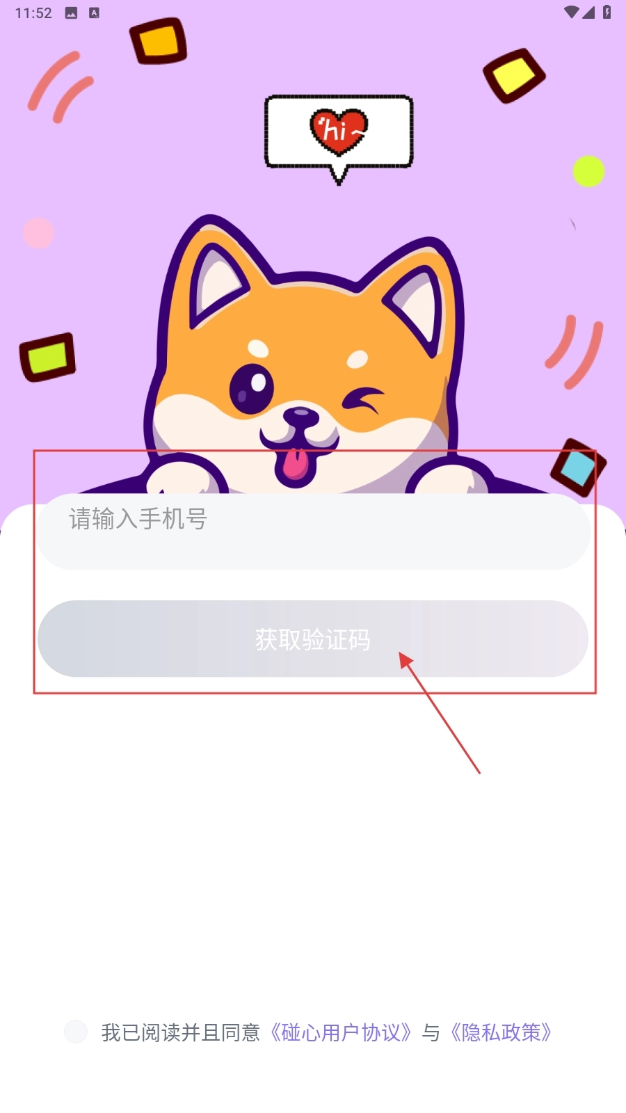 1. 点开【碰心】,在输入框中输入手机号,接着点击【获取验证码】,以此启动验证流程。