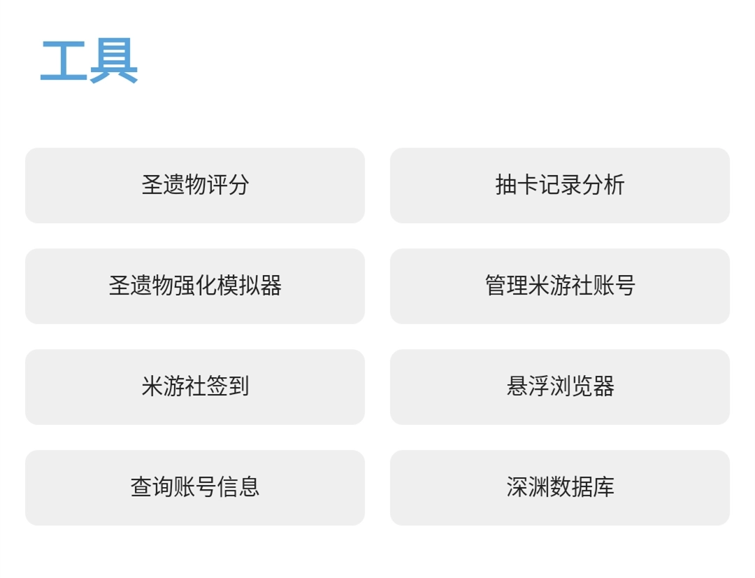 原神应急食品,这是一款专门面向原神玩家开发的安卓游戏助手类软件。借助它,玩家能便捷地获取各类游戏道具,还可实现抽卡记录导出功能,帮助用户记录自身抽卡进度等相关信息,更便于进行抽卡数据分析,整个软件绿色简洁。
