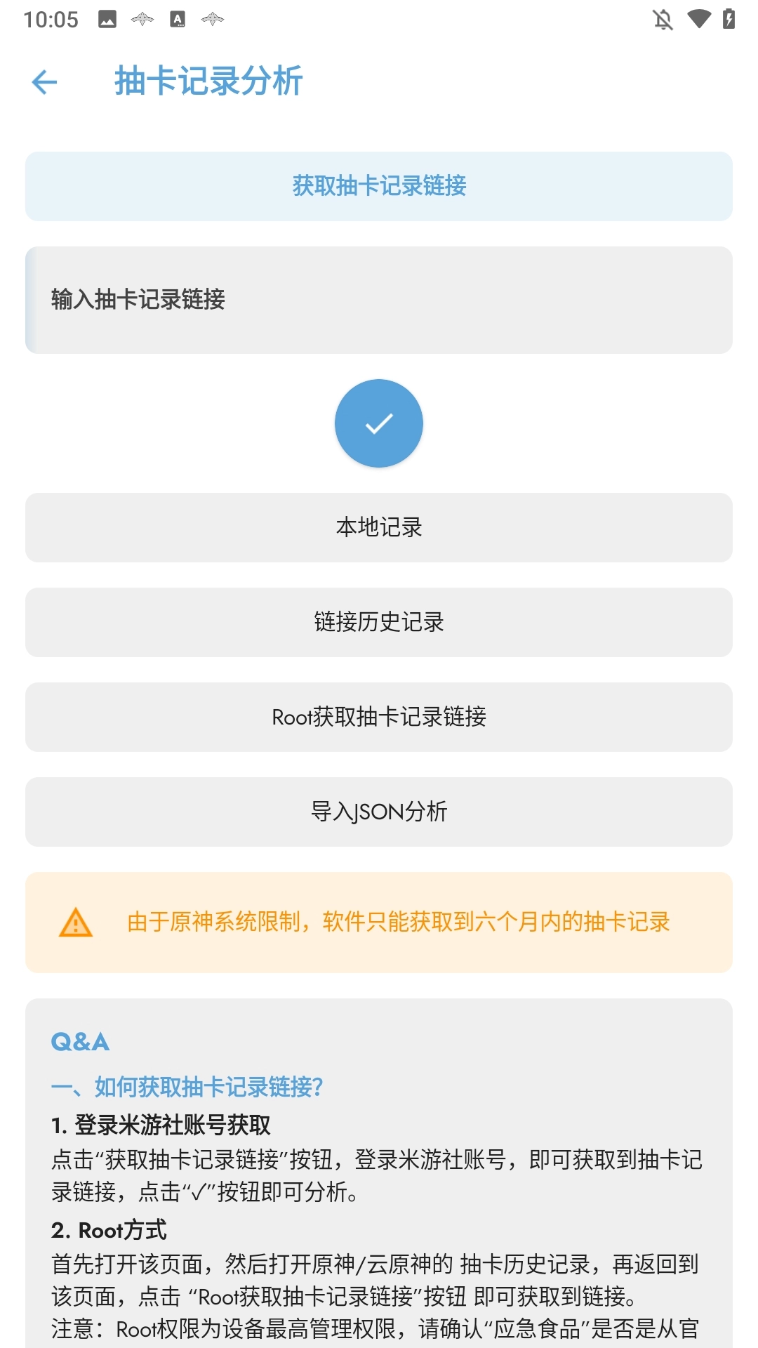 4、用户能够导入个人账号数据,对抽卡记录进行分析与记录。