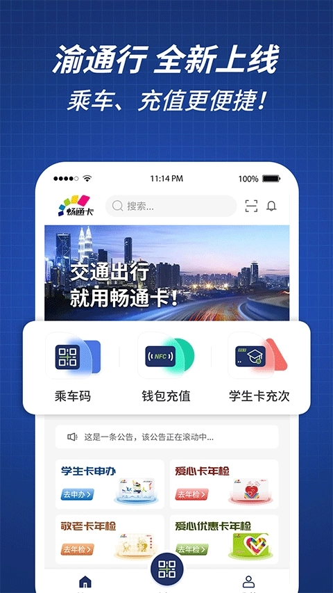 渝通行,一款专为重庆人民打造的必备公共交通出行软件,极大地方便了用户的交通出行。它实现了乘车一码通,只需轻松扫码即可乘车,真正做到无卡化出行,为所有人提供便捷的出行服务。在渝通行上,开发电子发票轻而易举,出行记录也能随时查看。此外,软件还提供学生卡办理服务,助力学生和老人更便捷地办卡,轻松申请免费服务。这款软件操作简便,能更好地助您畅快出行。