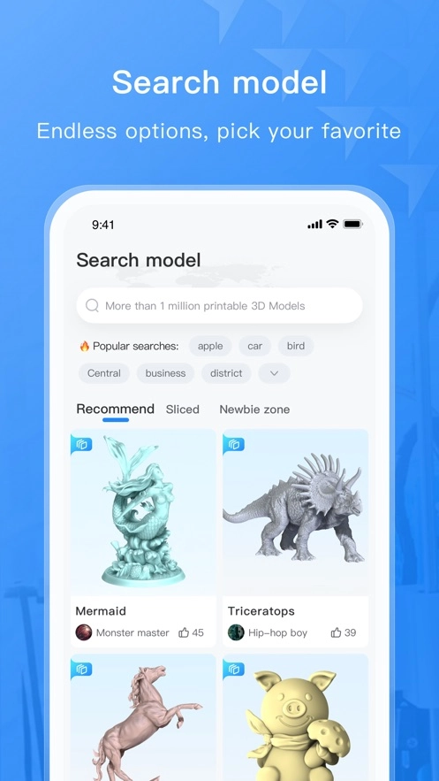 2. 设有预切片专区,能让你瞬间体验丝滑打印。同时,平台提供丰富的模型资源,方便网友搜索心仪的内容。